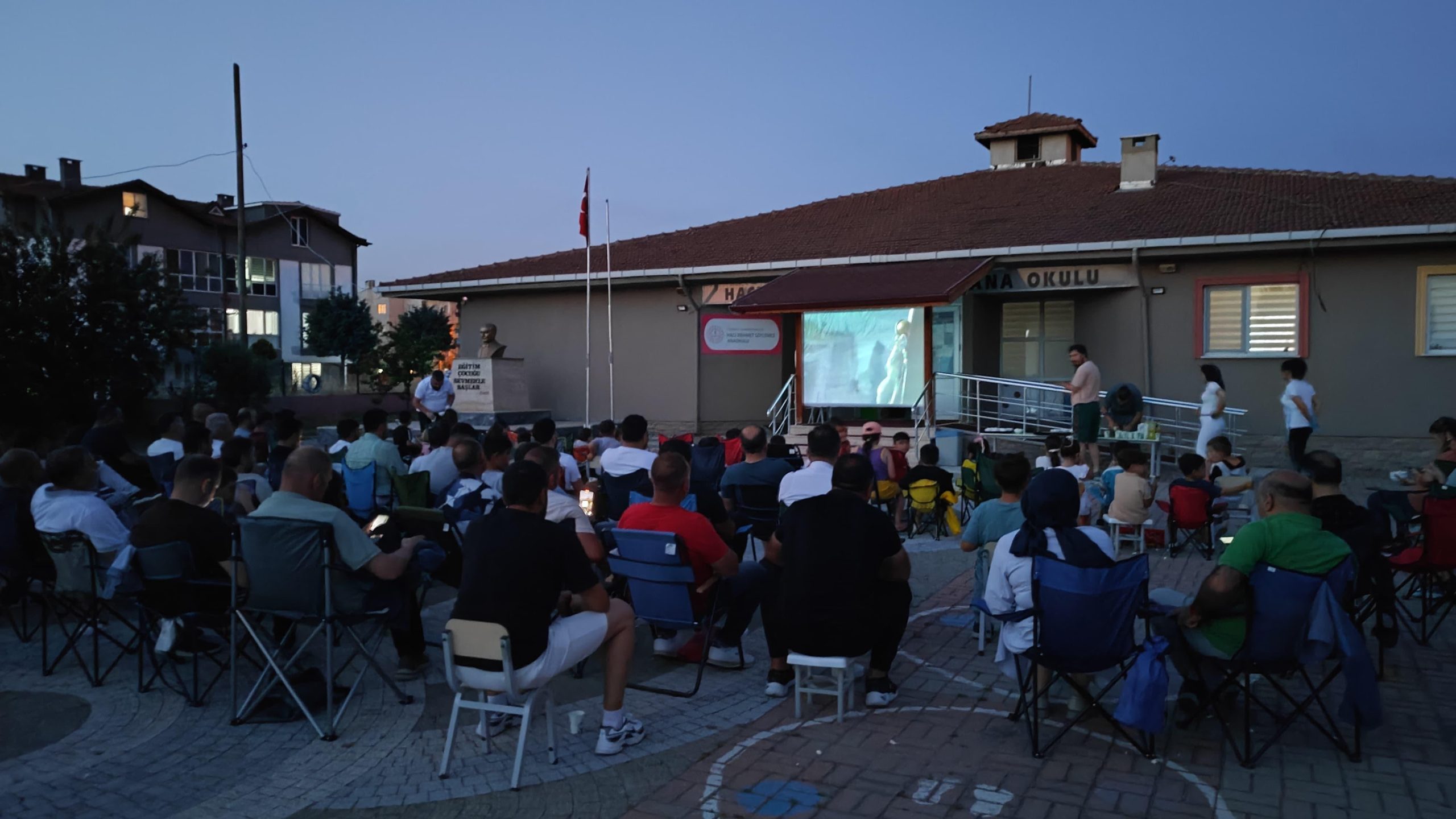 Açık hava sineması hem çocuklar hem de babaları için eğlenceli