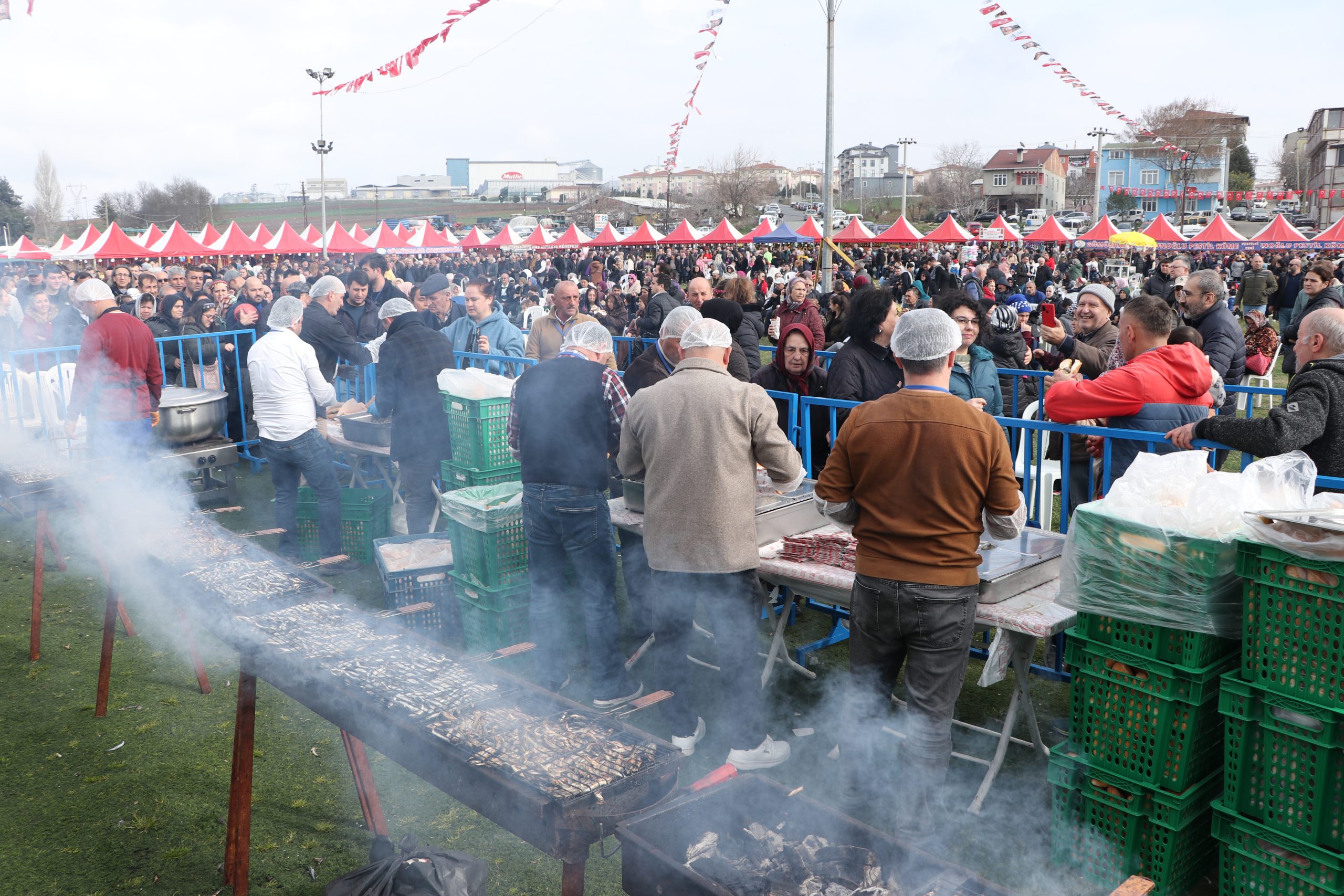 Trabzon’dan getirilen yaklaşık 5 ton hamsi ızgaralarda pişirilerek ikram edildi