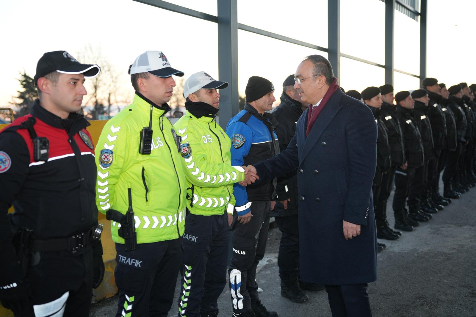 Görevli personelle sohbet eden Soytürk, yılbaşı gecesinde vatandaşların huzur ve güvenliği için büyük bir özveriyle çalışan ekiplere teşekkür etti.