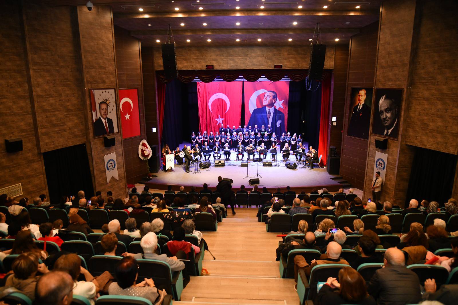 Şef Ahmet Okan yönetimindeki koro, Klasik Türk Müziği’nin seçkin eserlerini seslendirdi. Dinleyiciler, zaman zaman eserlere eşlik ederek Cumhuriyet coşkusuna ortak oldu.